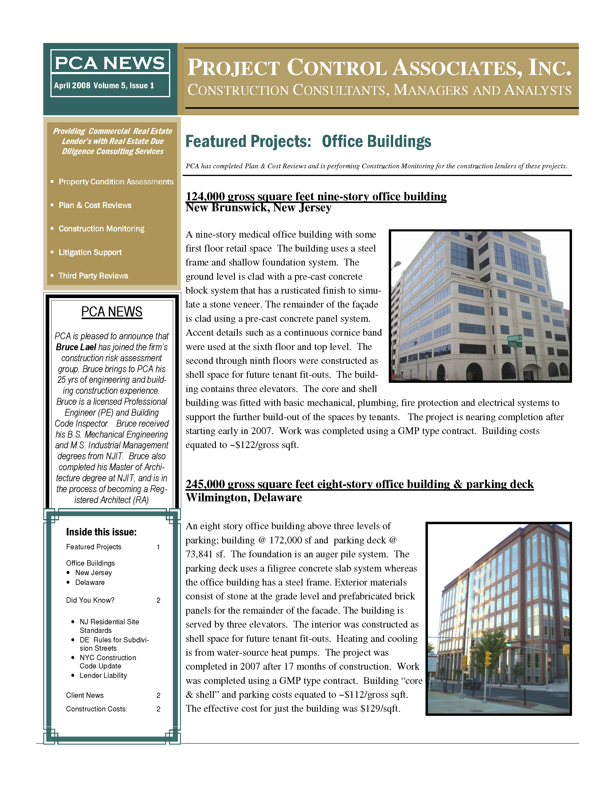Project Control Associates, Inc. is dedicated to providing construction, commercial, and capital market lenders with construction consulting, management, and analytical services.